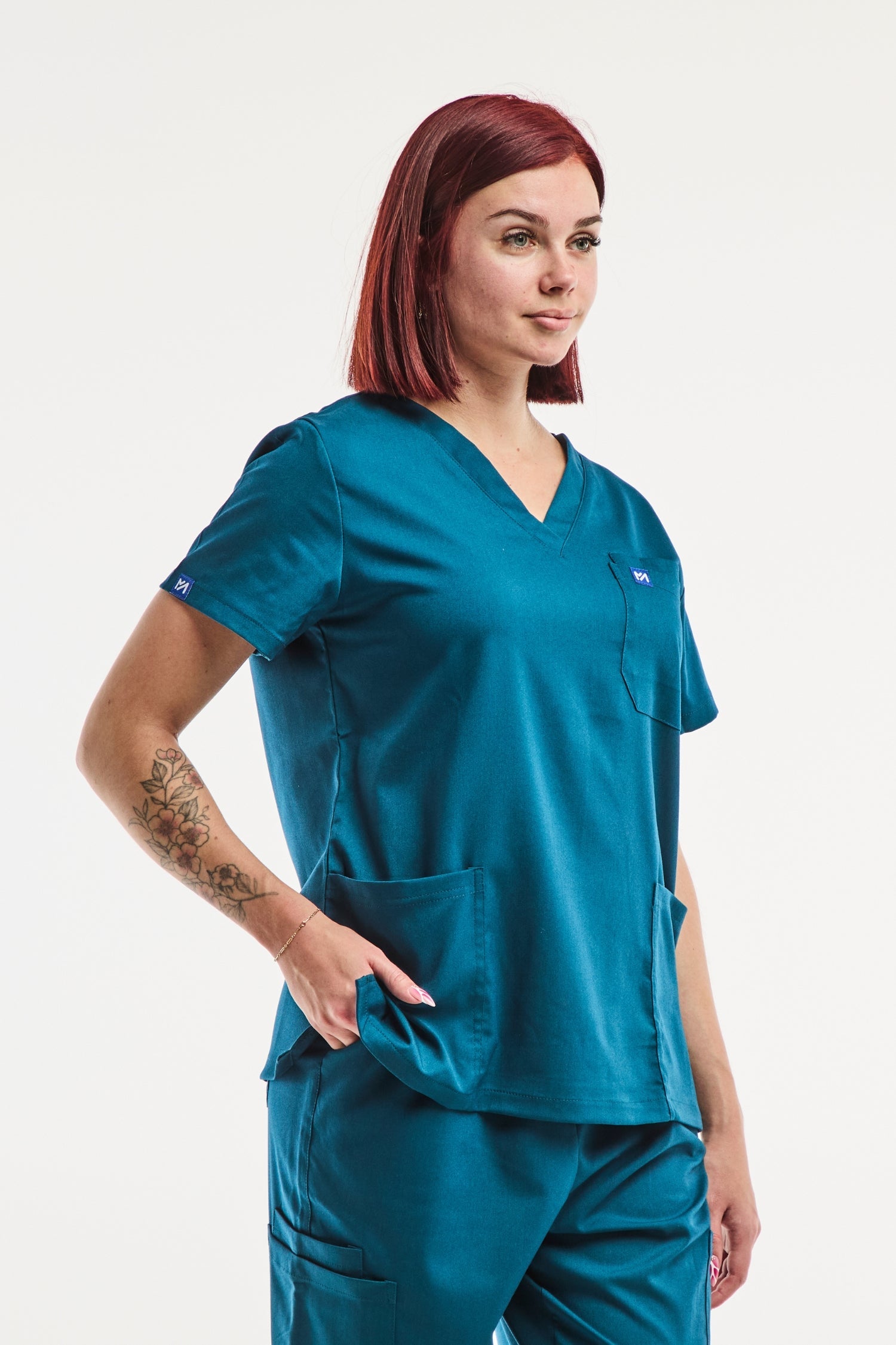 • Medizinische Damen-Tunika Emma, mit V-Ausschnitt und kurzen Ärmeln.