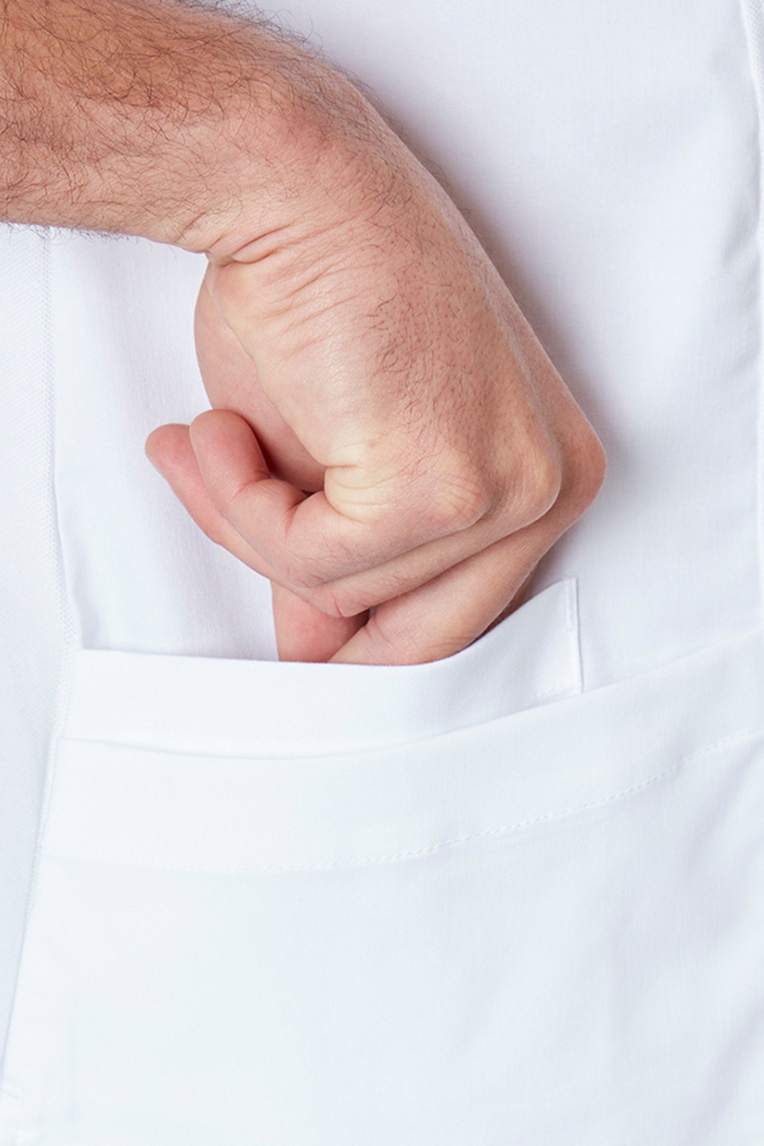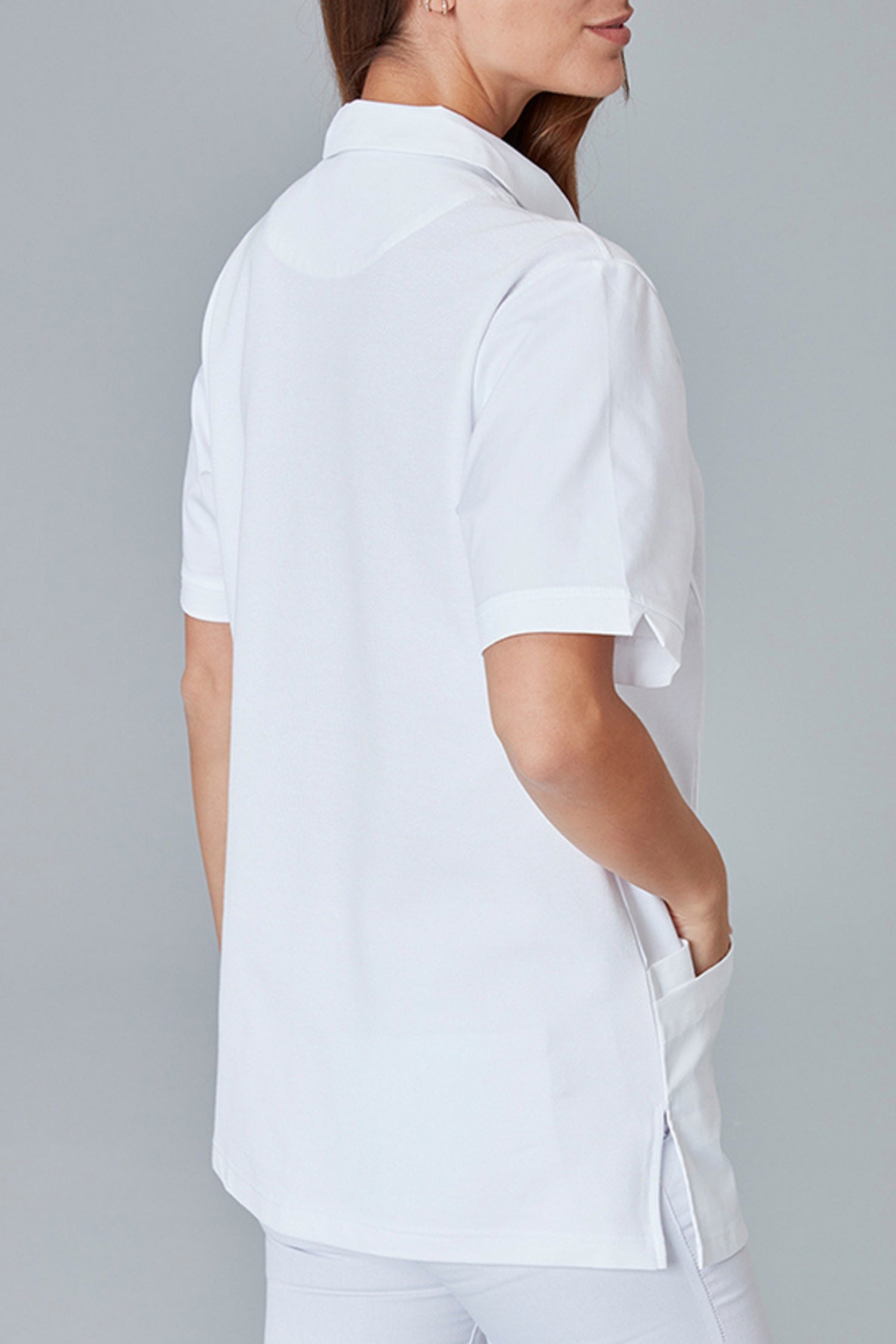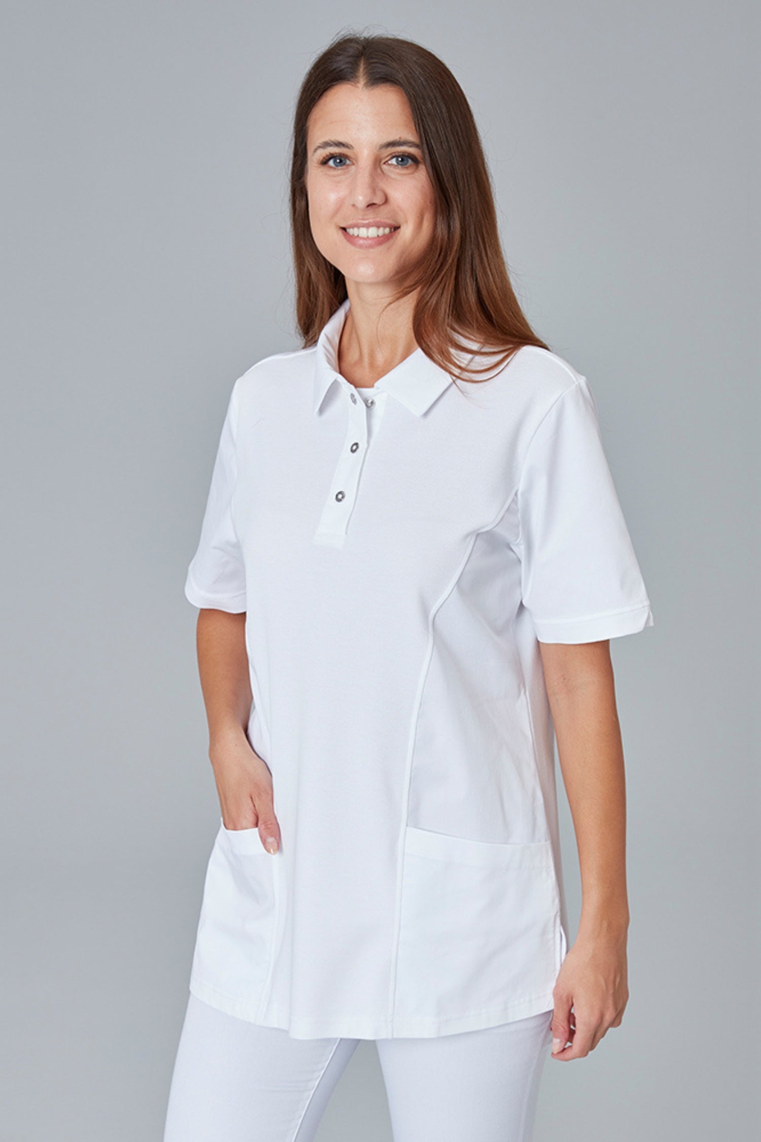 Dieses Polo-Tunika kombiniert modernen Stil und optimalen Komfort – ideal für Fachkräfte. Mit Polokragen und 3 Knöpfen, 2 Fronttaschen, einer zusätzlichen Tasche sowie 10 cm langen Seitenschlitzen bietet es maximale Bewegungsfreiheit.