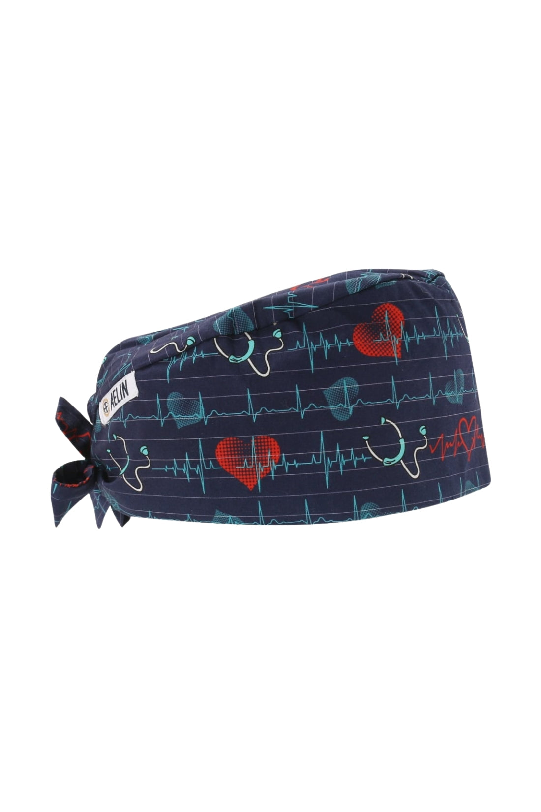 Medizinische Haube – Marineblau mit Stethoskop-Motiv – Kurzhaar