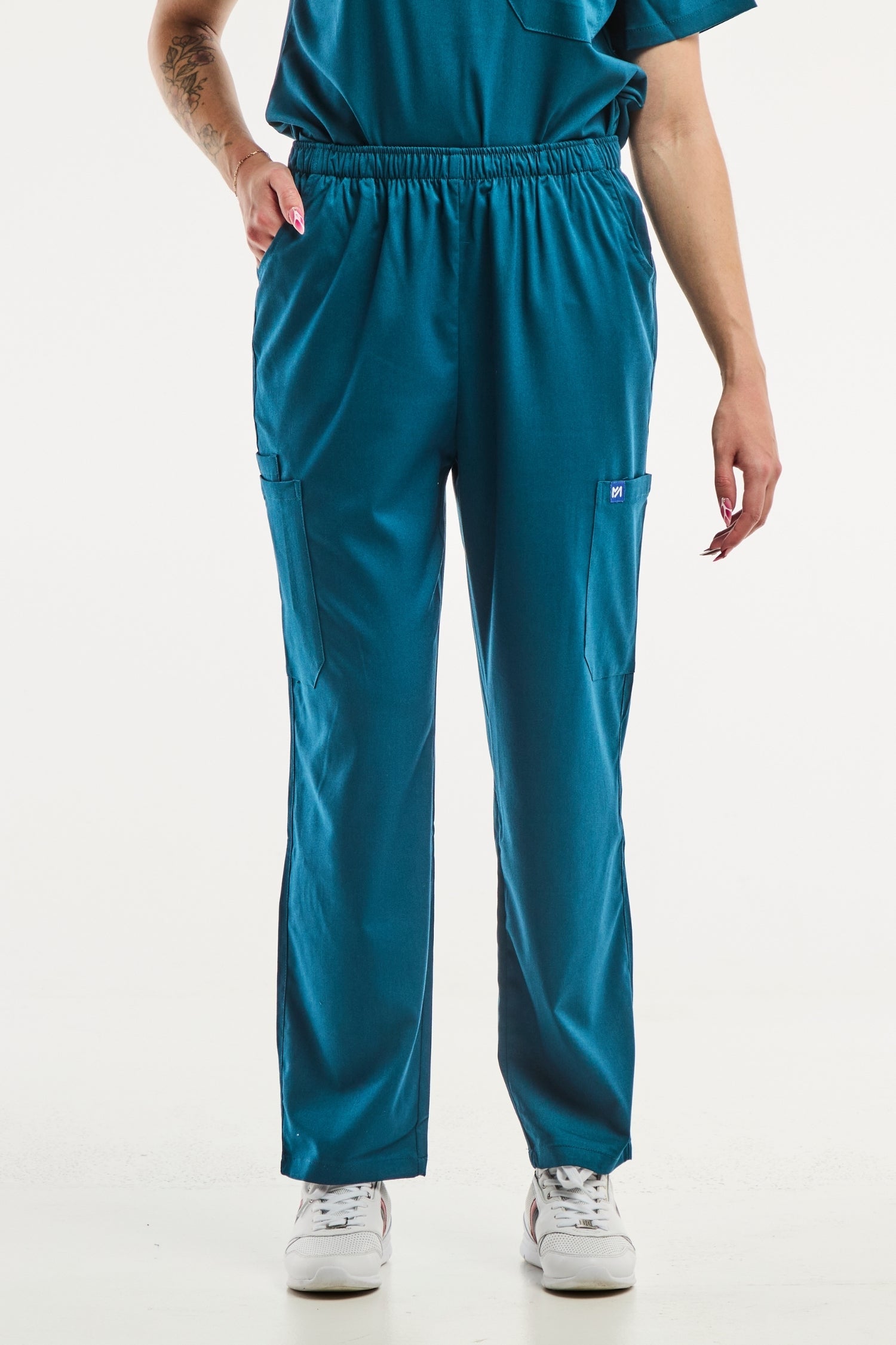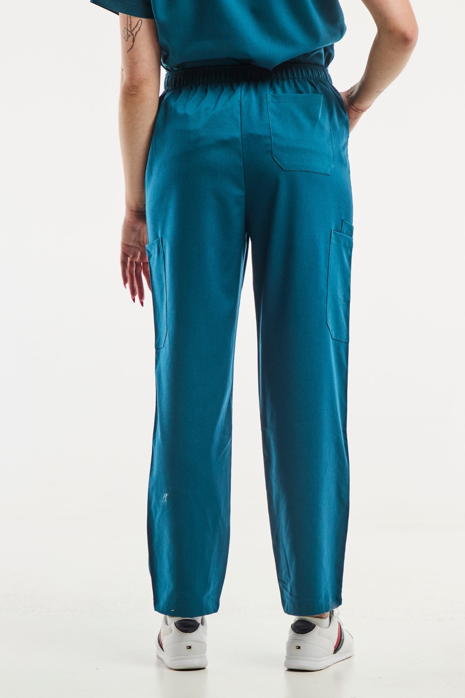 - Stoff aus Polyester, Viskose und Spandex: weich, atmungsaktiv und dehnbar.