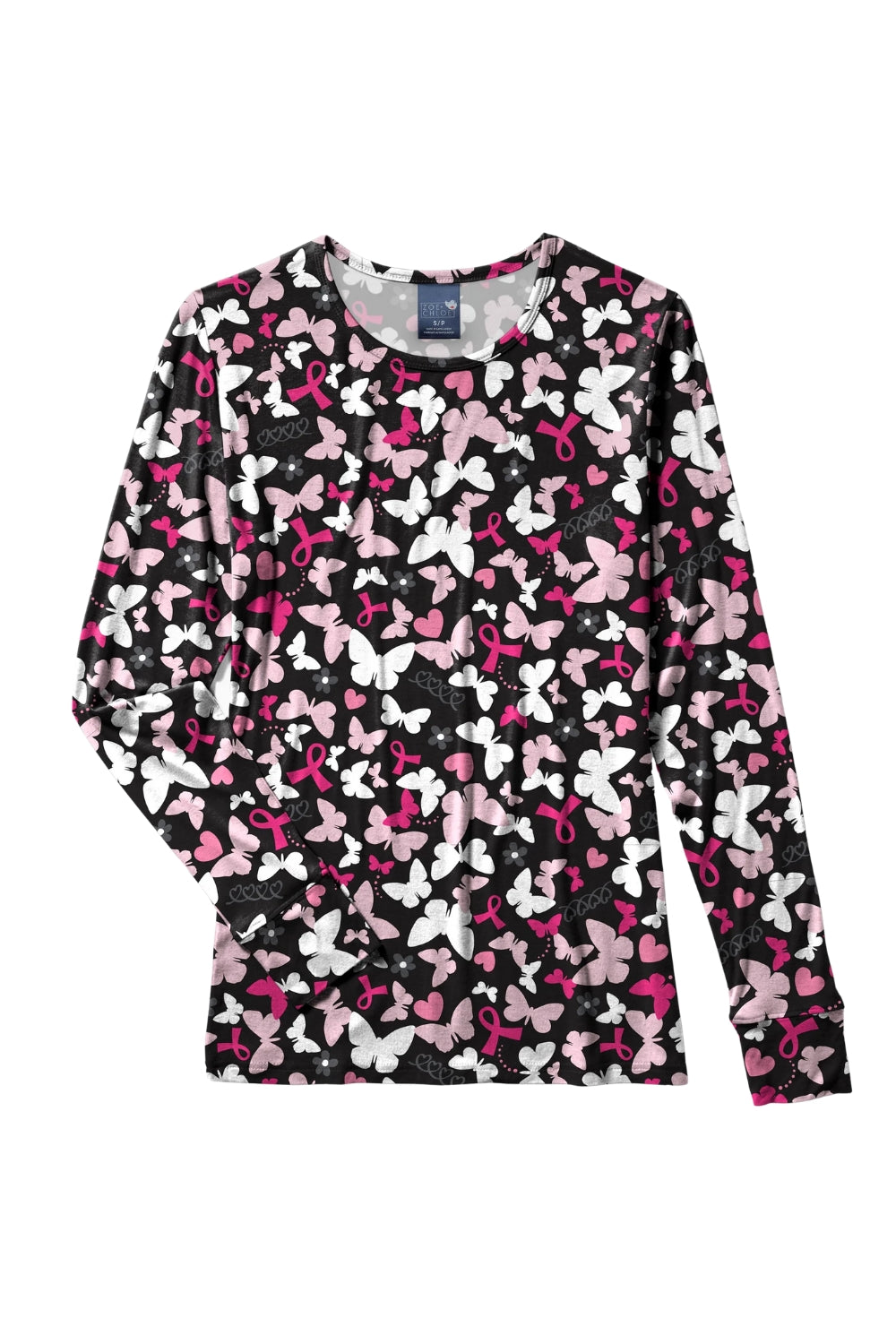 Medizinische Bluse – Schwarz mit rosa-weißen Schmetterlingen