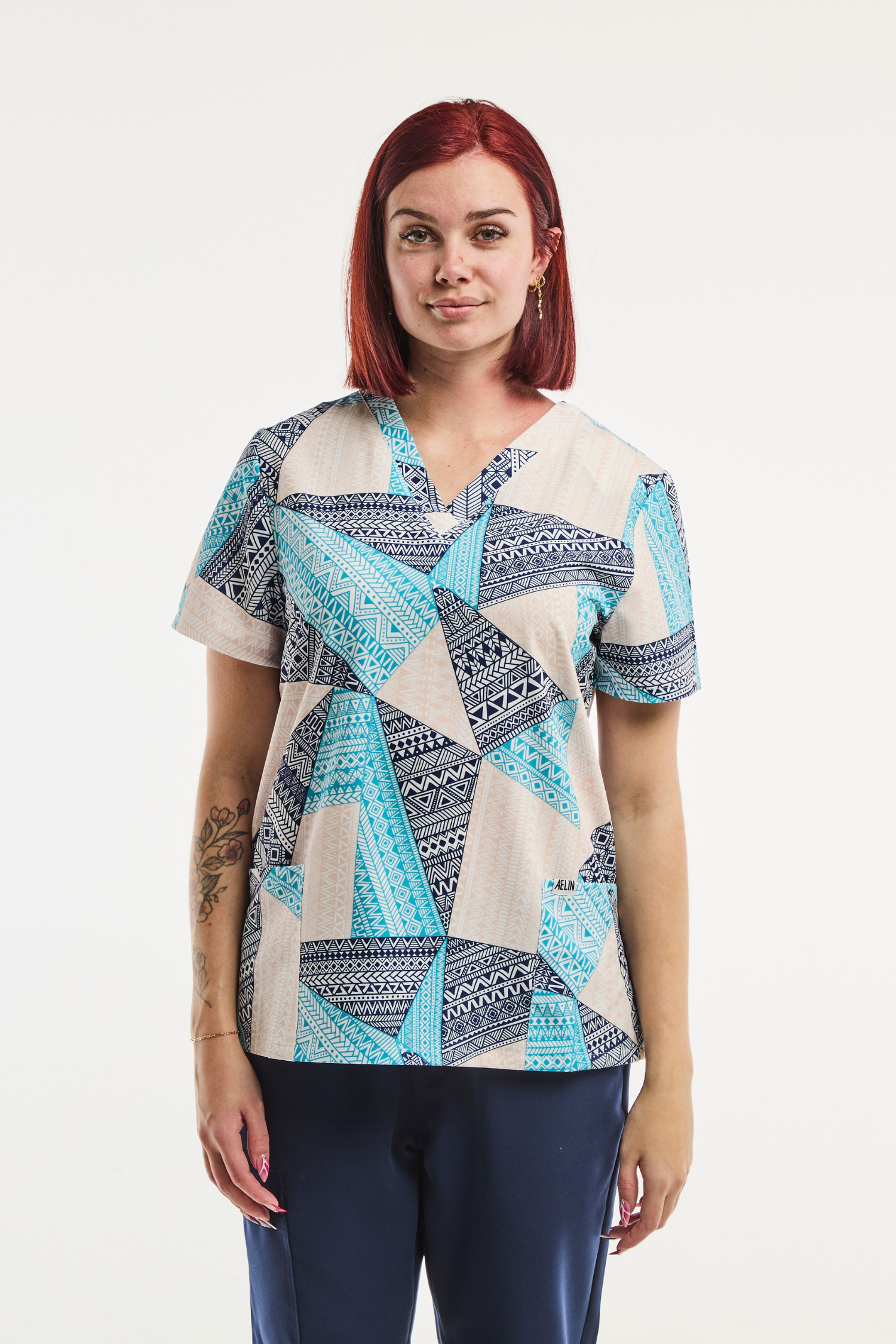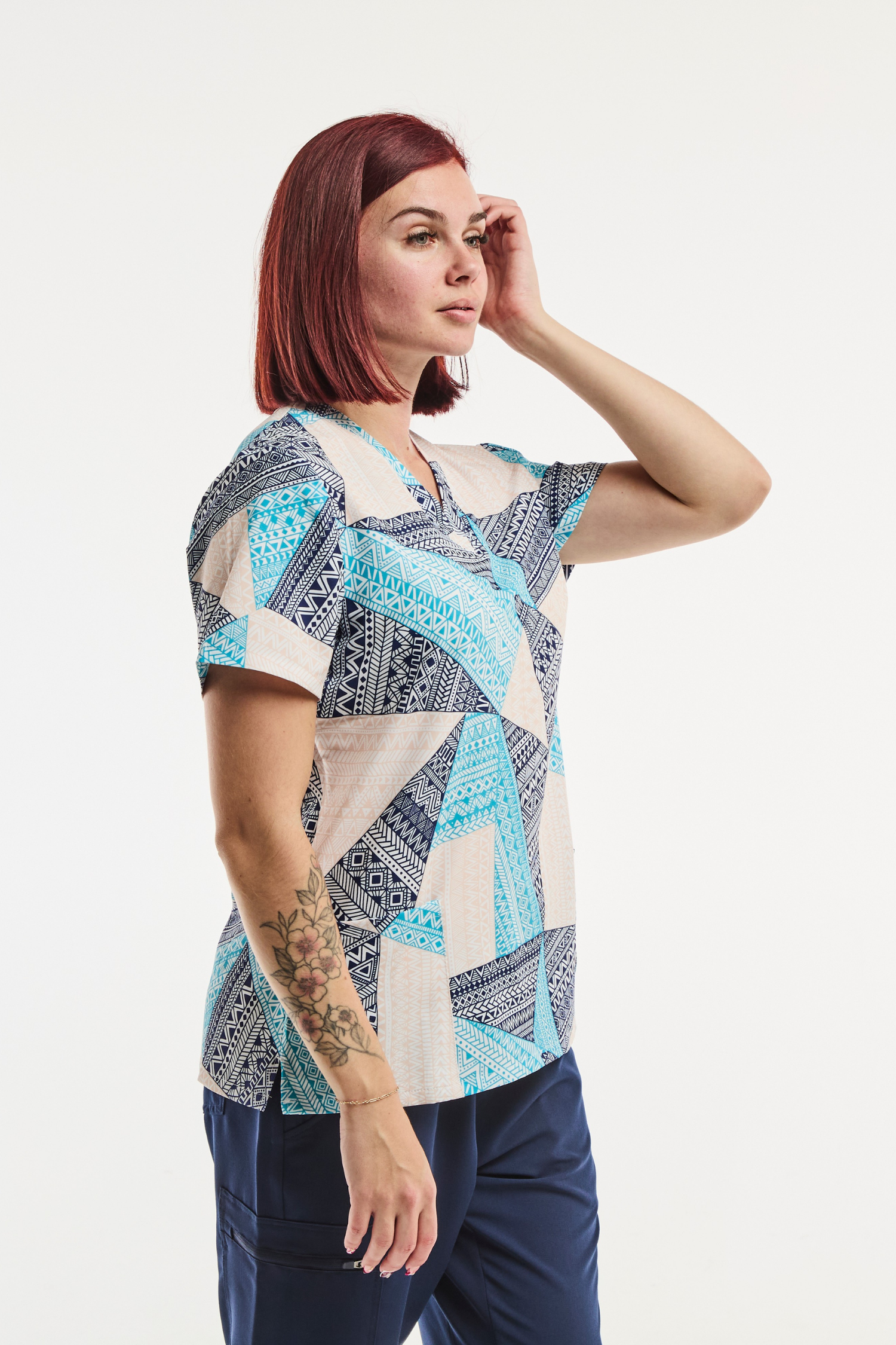 Medizinische Stretch-Tunika – Damen – Elegante Geometrie