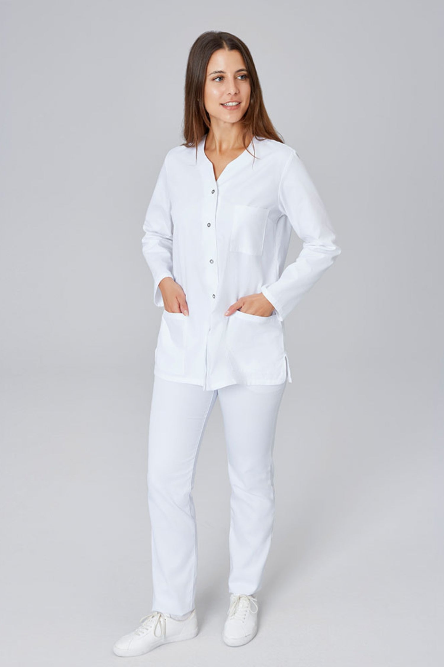 Medizinische Bluse mit langen Ärmeln – Damen – Weiß