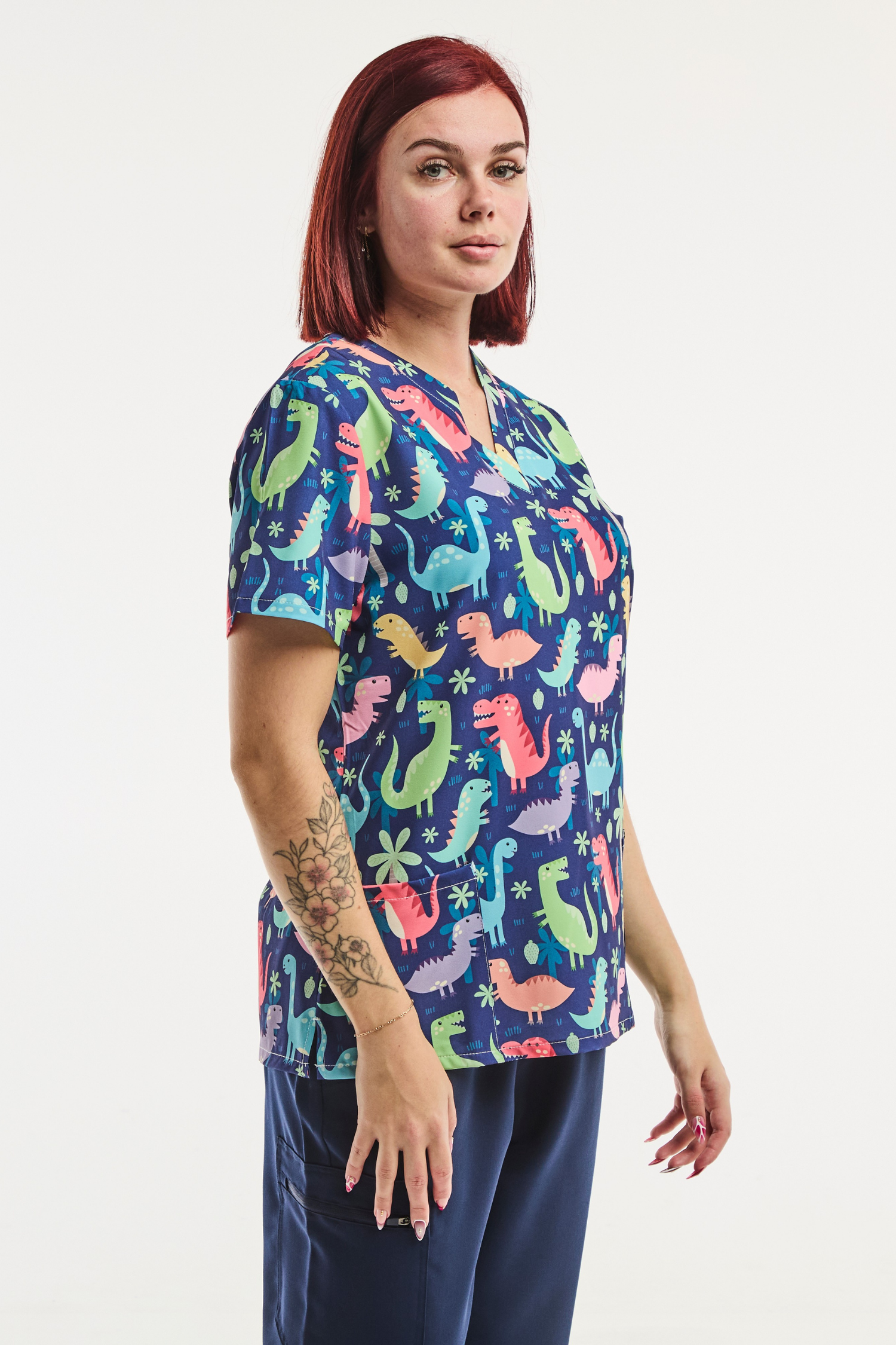 Medizinische Stretch-Tunika – Damen – Dino Pop